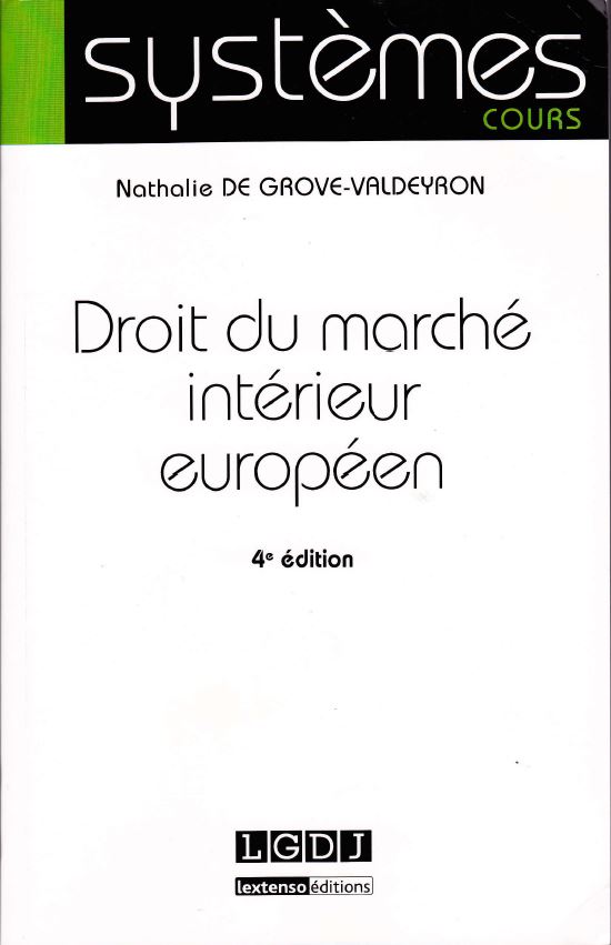 "Droit du marché intérieur européen" ouvrage de Nathalie De Grove-Valdeyron-IRDEIC/CEEC