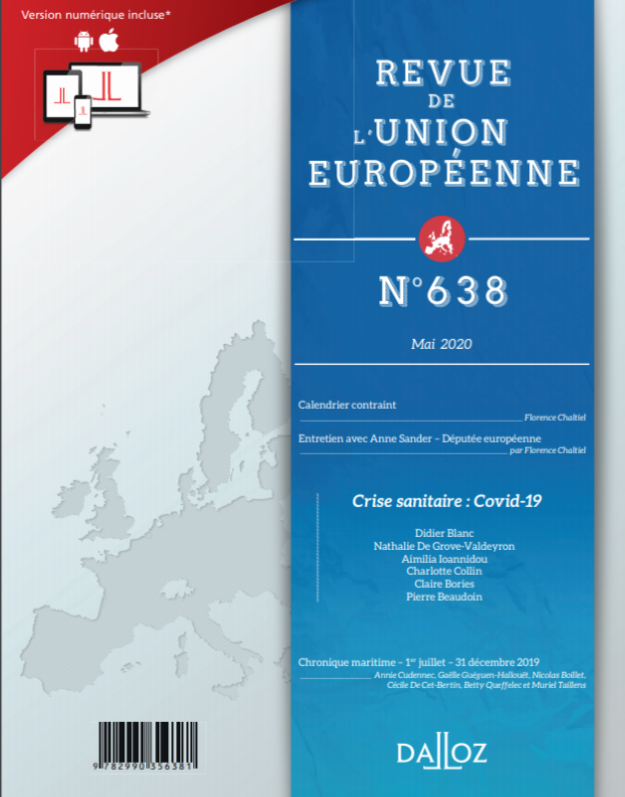 Revue de l'Union européenne, N° 638 Mai 2020 ; contributions de Claire Bories, Nathalie De Grove-Valdeyron et Didier Blanc, IRDEIC