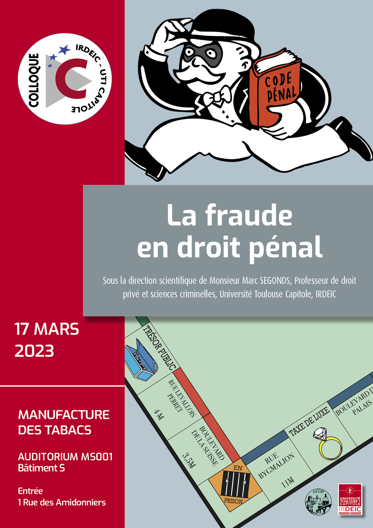 Colloque sous la direction scientifique de Monsieur Marc SEGONDS, Professeur de droit privé et sciences criminelles, Directeur-adjoint de l'Institut de Recherche en Droit Européen, International et Comparé (IRDEIC).