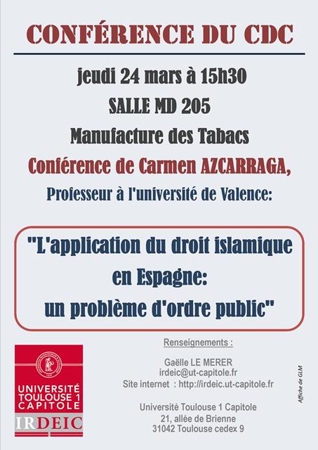 "L'application du droit islamique en Espagne: un problème d'ordre public", conférence du Professeur Carmen AZCARRAGA, organisée par le Centre de Droit Comparé de l'IRDEIC