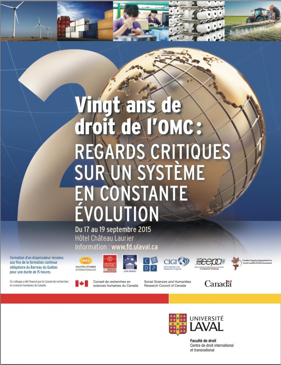 Vingt ans de droit de l’OMC : Regards critiques sur un système en constante évolution. Colloque international IRDEIC - Université de Laval
