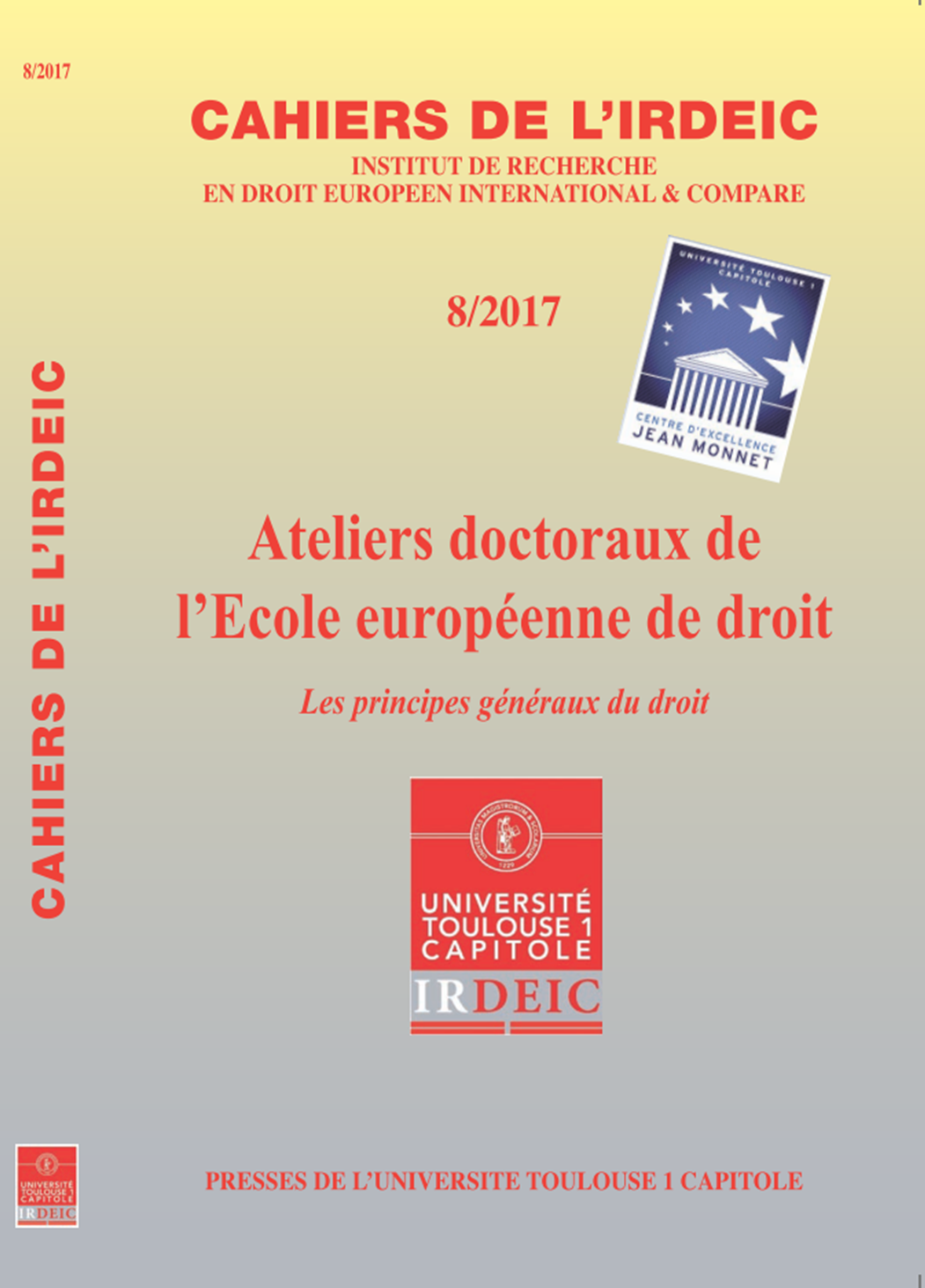 Ateliers doctoraux de l'Ecole européenne de droit - Les principes généraux du droit Cahiers de l'IRDEIC 8/2017