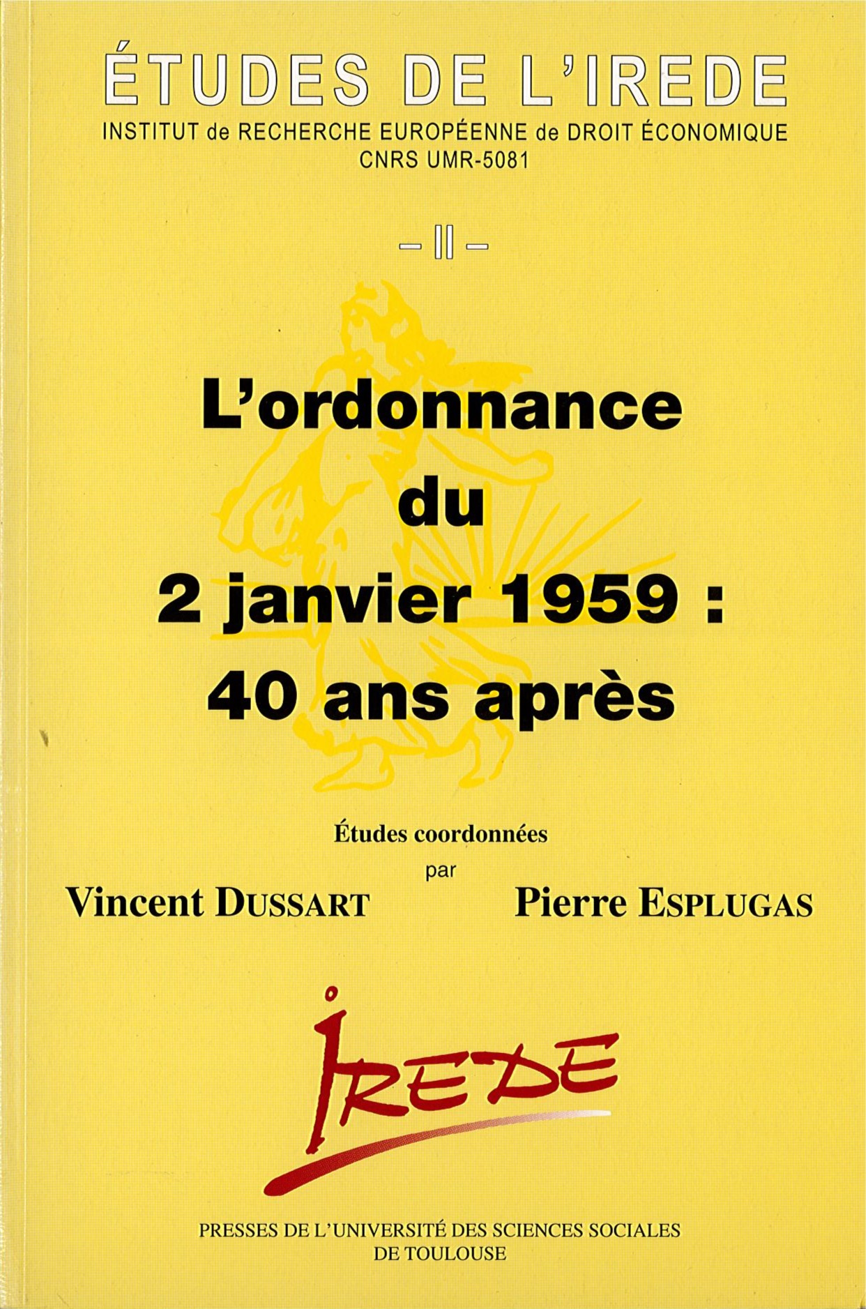 "L'ordonnance organique du 2 janvier 1959 : 40 ans après" Études de l'IREDE II coordonnées par Vincent Dussart et Pierre Esplugas; IREDE CERCP