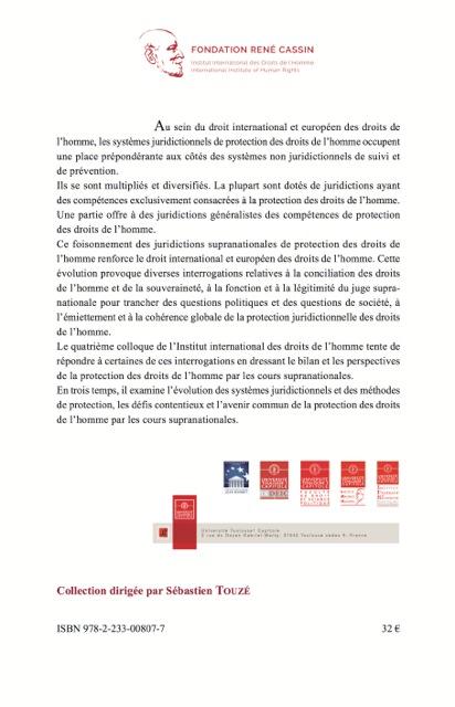 La Protection des Droits de l'Homme par les Cours Supranationales - Actes du colloque IRDEIC IMH des 8 et 9 octobre 2015, Editions A. Pedone