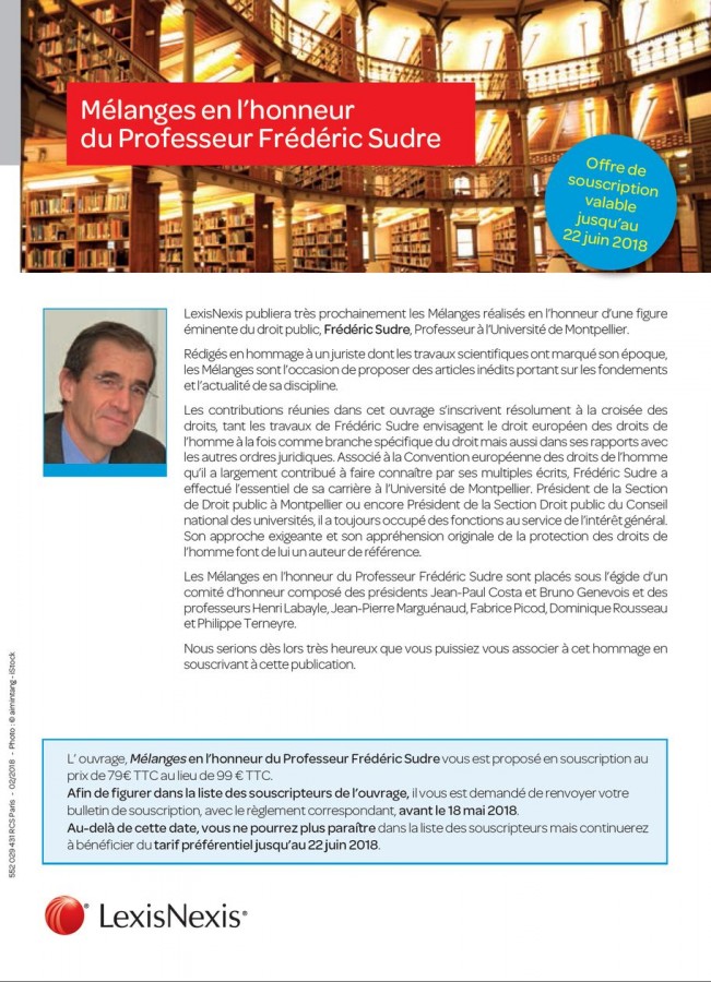 Sous-titre: Mélanges en l'honneur du professeur Frédéric Sudre