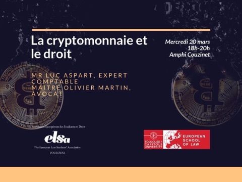 Conférence "La crypto-monnaie et le droit", avec M. Luc Aspart, expert-comptable, M. Olivier Martin, avocat et M. Martin Delafosse, diplômé de Master 2 Droit des affaires