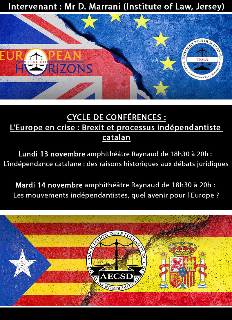 Cycle de Conférences organisé par l'Association du Collège Supérieur de Droit (AECSD), l'Association des Étudiants de l'École Européenne de Droit (TESLA) et European Horizons Toulouse.