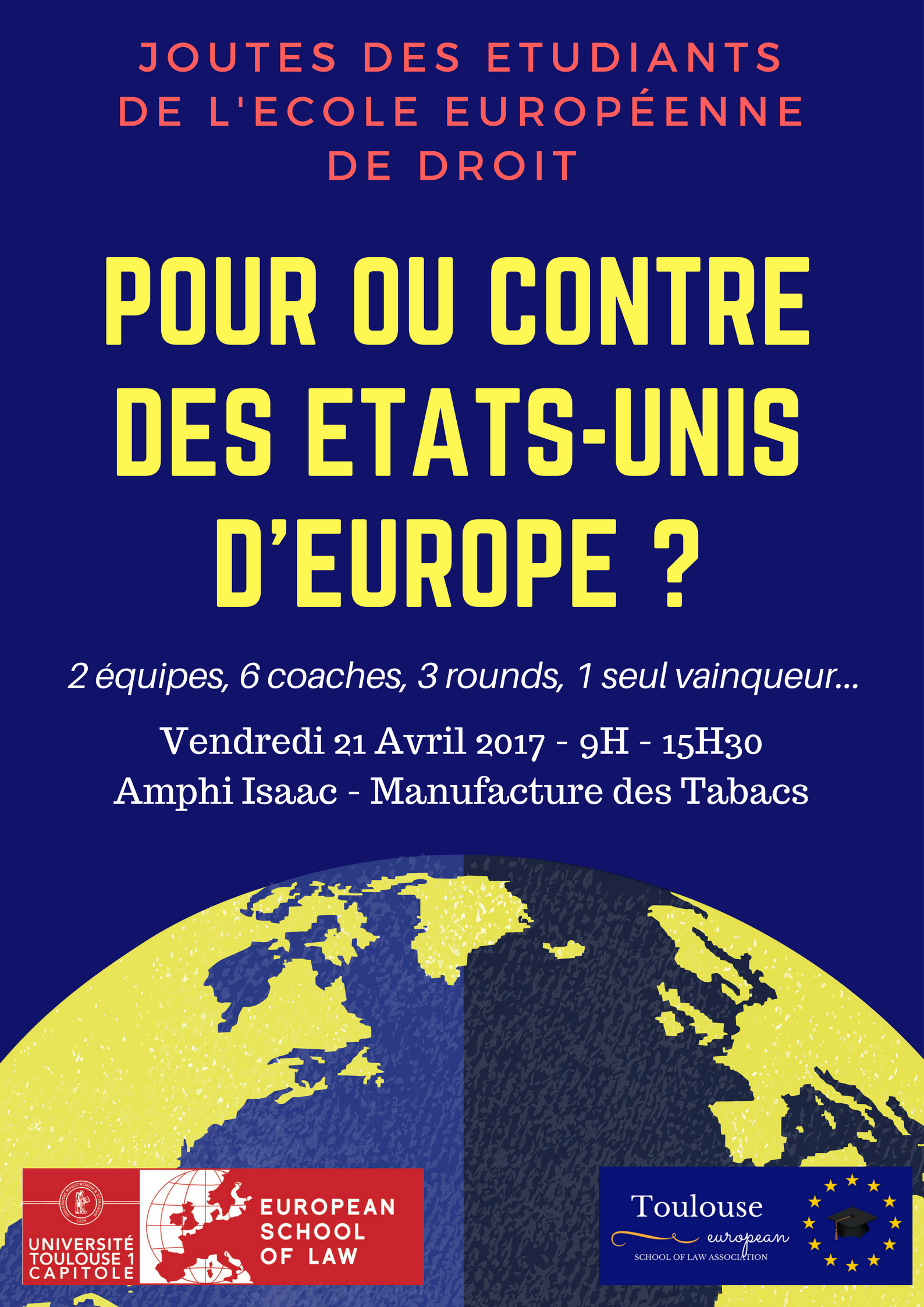 Après le succès de l’édition 2016, les Joutes des étudiants de l’European School of Law sont de retour ! La Toulouse European School of Law Association – TESLA organise pour une deuxième année consécutive ce grand évènement.