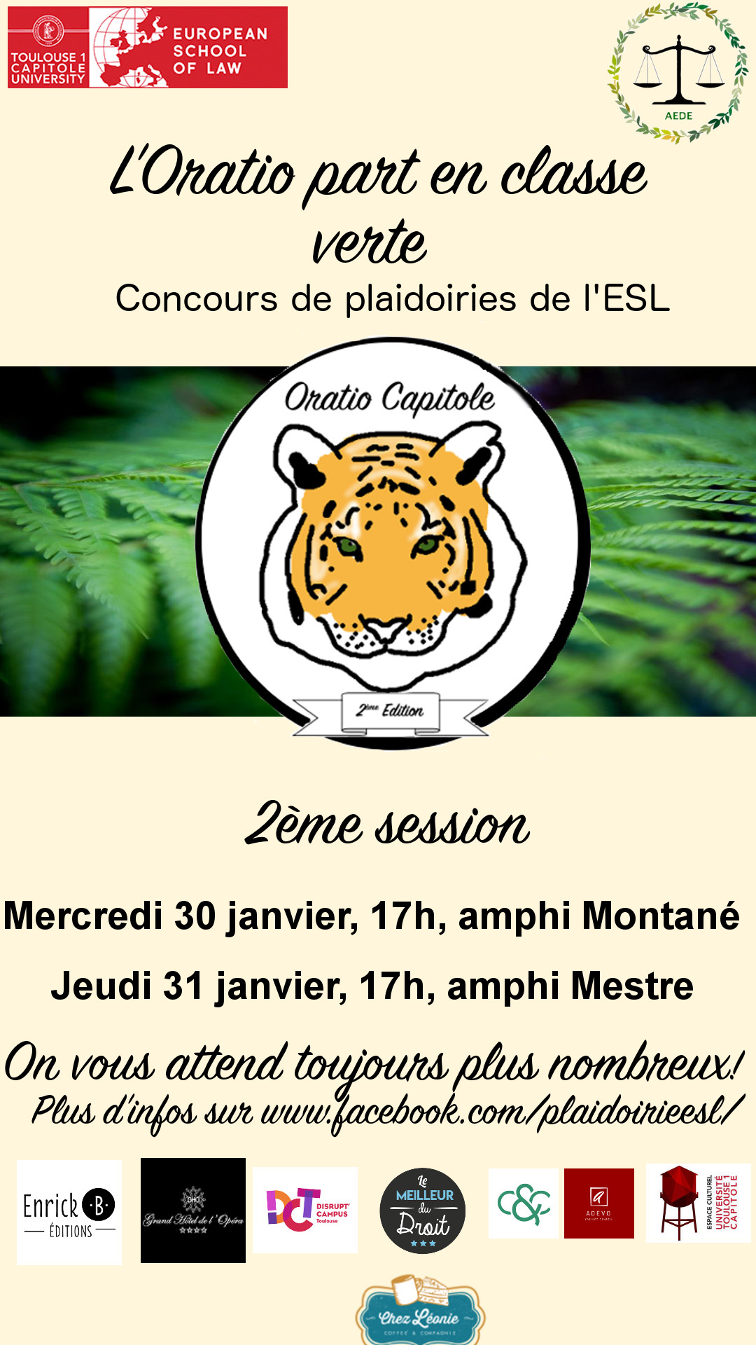 Grâce à sa collaboration avec l'AEDE (Association des Étudiants en Droit de l'Environnement), l'Oratio innove en vous proposant une session consacrée au droit de l'environnement.