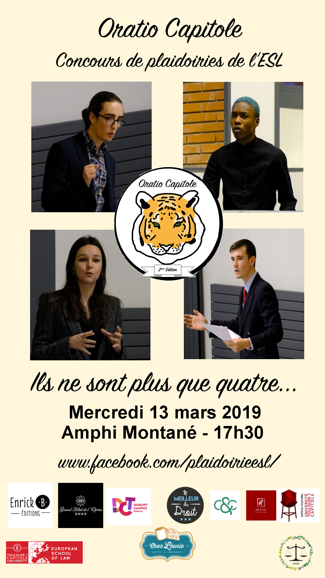 Vous aurez le plaisir de voir s'affronter les quatre finalistes des collèges licence et master ; deux étudiants font partie de l'école. Soyez nombreux à venir les encourager.
