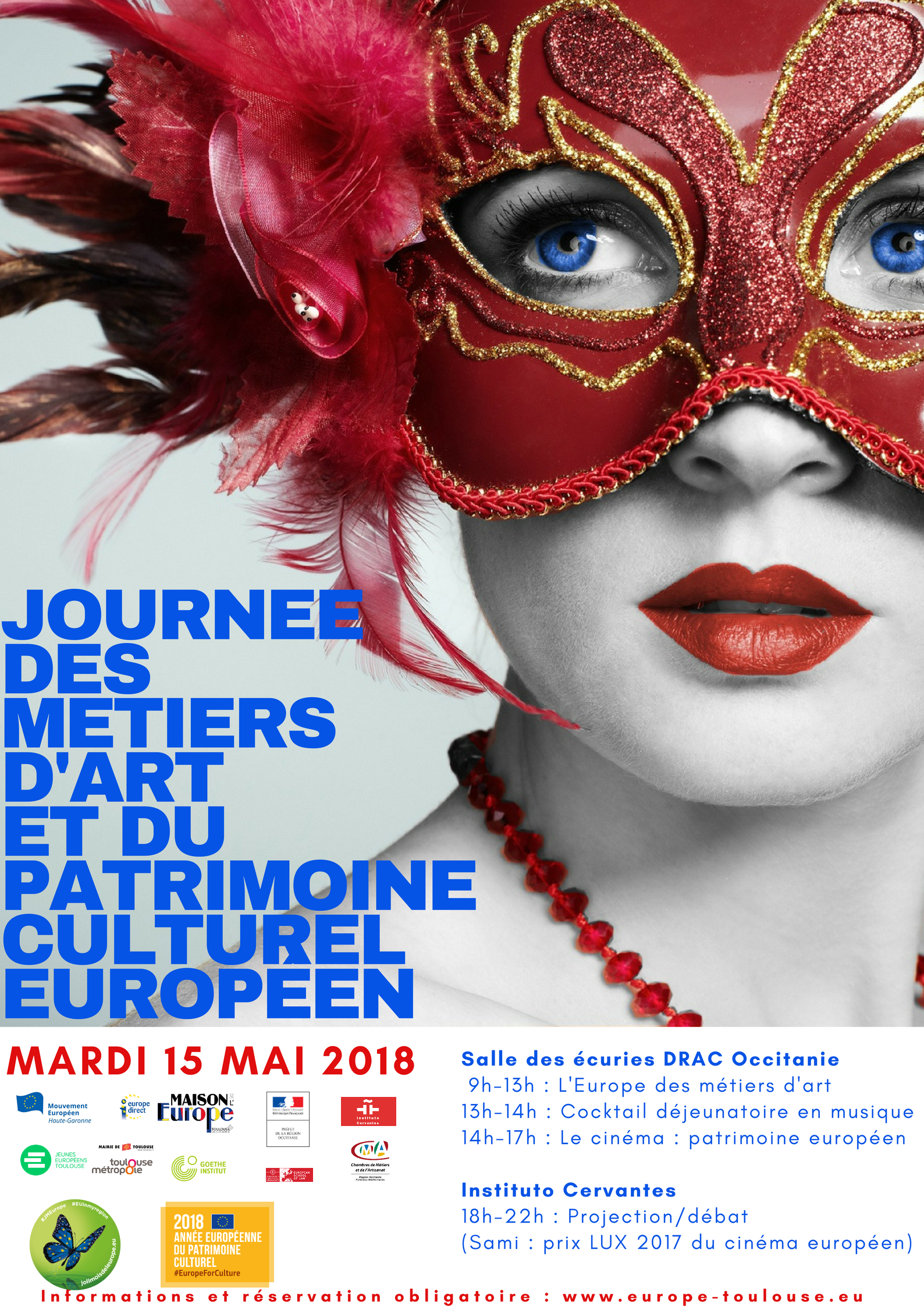 À l'initiative du Mouvement européen et en partenariat avec la Maison de l'Europe-CIED, la DRAC Occitanie, la Chambre régionale des métiers et de l'artisanat, Toulouse métropole et la Mairie de Toulouse, l'Académie de Toulouse, l'Institut Cervantes et le Goethe Institut, et enfin, la European School of Law, la Journée des métiers d'art et du patrimoine culturel européen s'est déroulée le mardi 15 mai 2018 dans la salle des anciennes écuries de la DRAC à Toulouse.