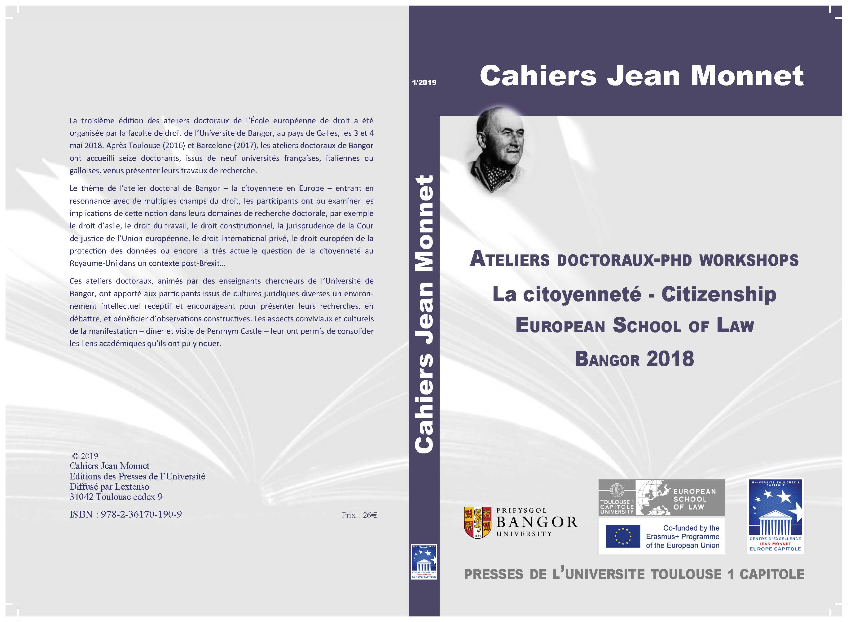 Les actes des Ateliers doctoraux de Bangor, qui se sont déroulés en mai 2018 sur le thème de la citoyenneté, sont parus dans la nouvelle collection des Cahiers Jean Monnet de l'IRDEIC aux Presses de l'Université Toulouse Capitole.