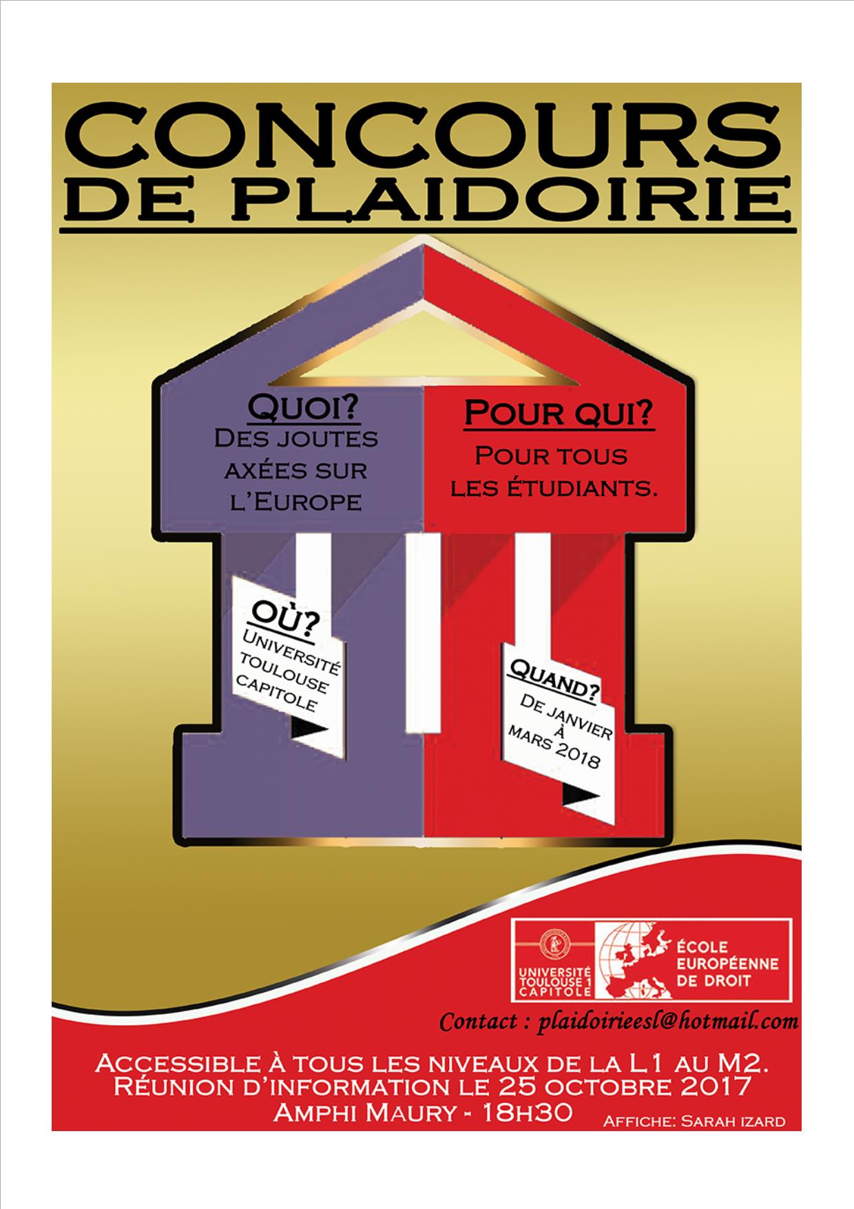 Myriam Bennani Hassan, Lilia Meunier-Mili et Hugo Stephan, étudiants inscrits dans l'Unité 4 du Diplôme de l'ESL, organisent un concours de plaidoiries ouvert à tous les étudiants de l'UT Capitole.